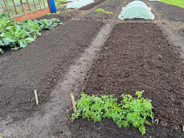 Harvests in 2025 were 97.5 kg dig bed, 106 kg from no dig, same compost applied and each bed is 1.5 × 5 m, 5 × 16ft.